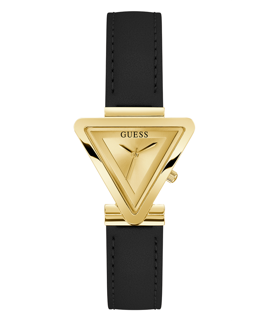 Product:GW0548L3 Attachement Color:Black Band Material:Genuine Leather Buckle/Clasp:Strap Buckle Case Color:Gold Tone Case Diameter:30 mm Case Finish:Polished Case Height: Case Material:Stainless Steel Case Shape:Triangle Crystal Lens:Mineral glass Dial Color:Champagne Dial Markings: Strap and Lug Width:16 mm Water Resistance:10